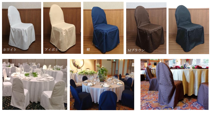 お客様の要望によって定番外で製作したテーブルクロスやチェアカバーで、一度も使用されなかったものや数回または1回のみのご利用でその後お客様の都合によって使用されなくなったものなどいろいろな事情により在庫となってしまったものが沢山有ります。
